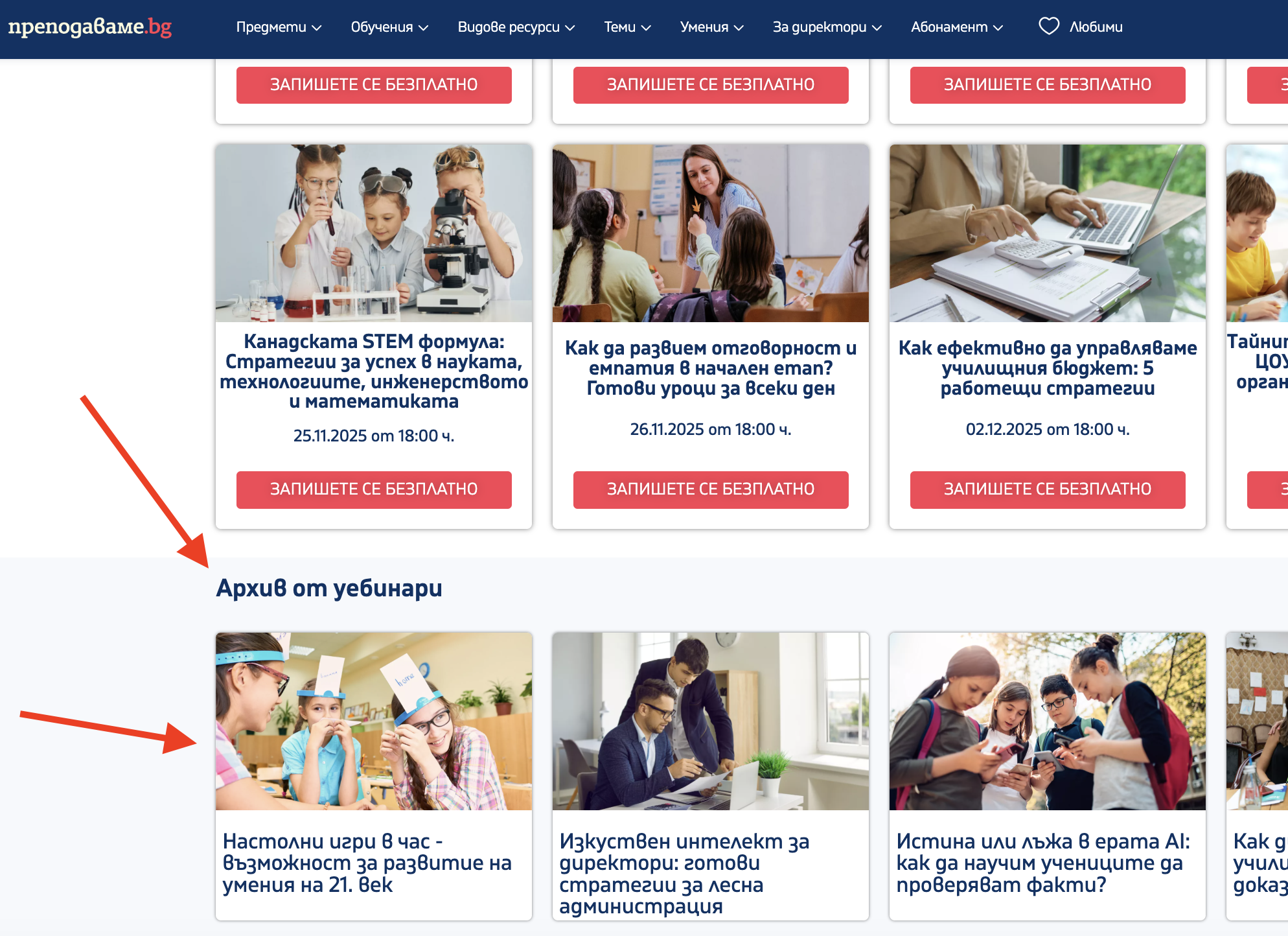 prepodavame.bgи влезте в главното меню Обучения > Уебинари.