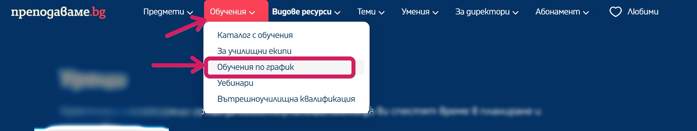 2. От главното меню изберете "Обучения" > "Обучения по график".