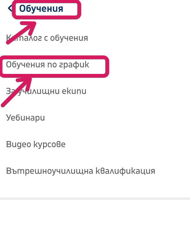 3. От менюто изберете "Обучения" > "Обучения по график".