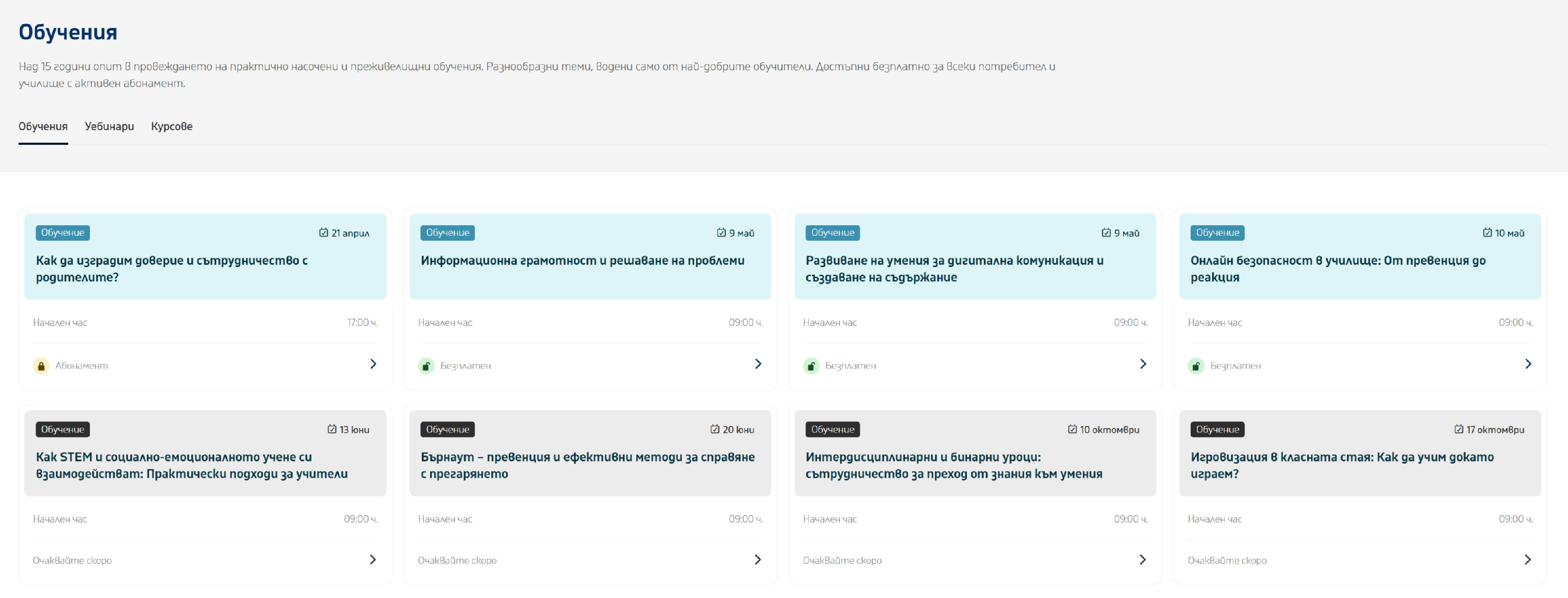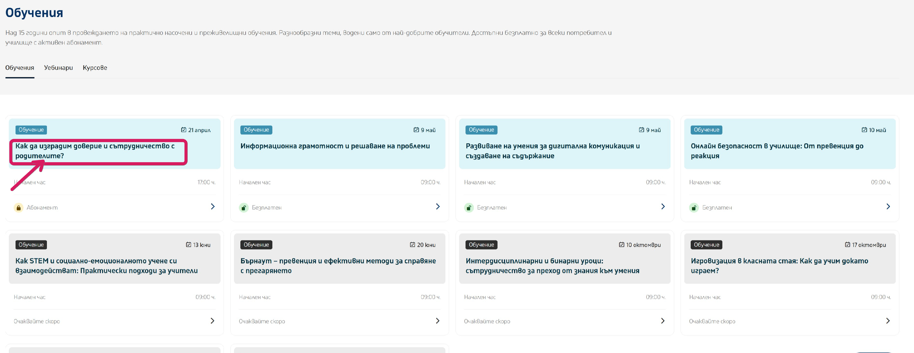 4. От страницата, която се зарежда, изберете обучението, което Ви интересува.