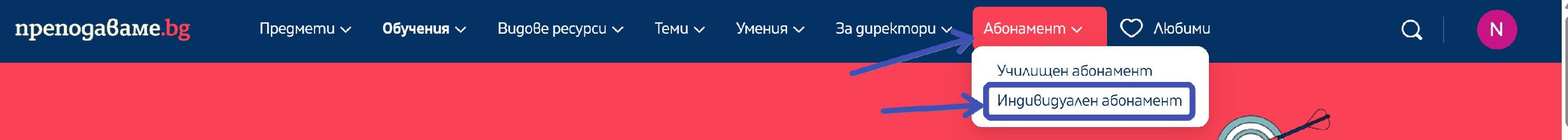 3. От главното меню отидете на Абонаменти > Индивидуален абонамент или последвайте този линк;