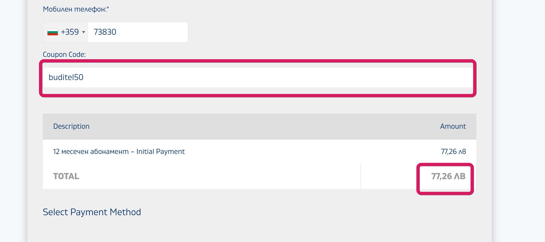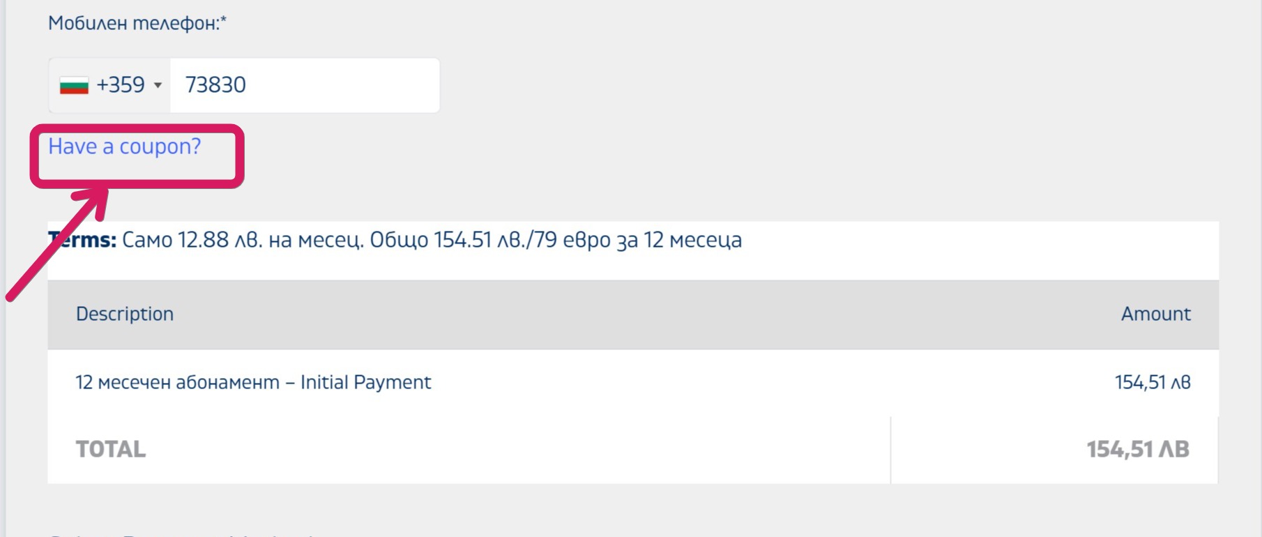 5. Ако разполагате с код за намаление, натиснете върху „Have a coupon?