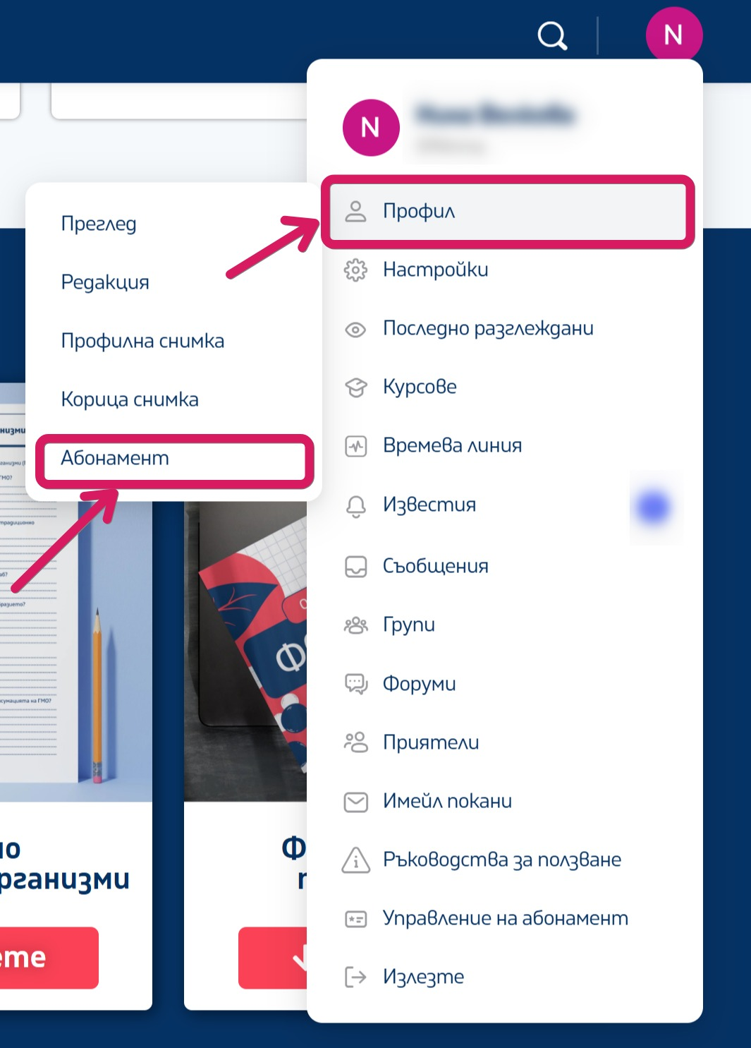 За целта първо се уверете, че сте влезли в профила си и от меното, което се отваря когато натиснете върху името си, изберете „Профил“ > "Абонамент".